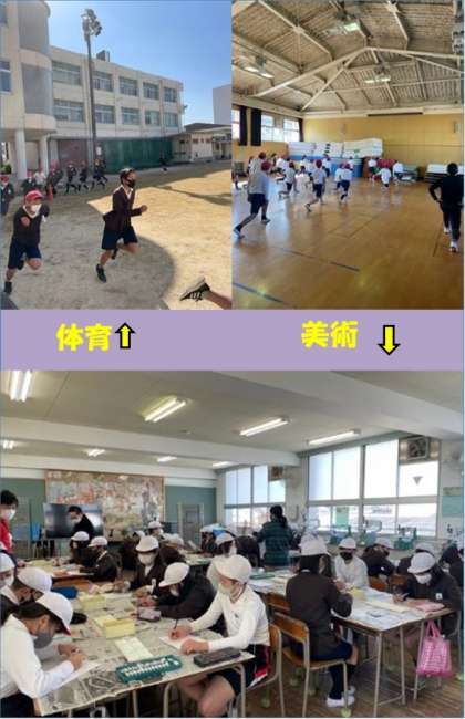 教科は、体育・美術・技術・家庭・音楽です。はじめは緊張気味でしたが、2時間目は慣れてきて、積極的に活動していました。