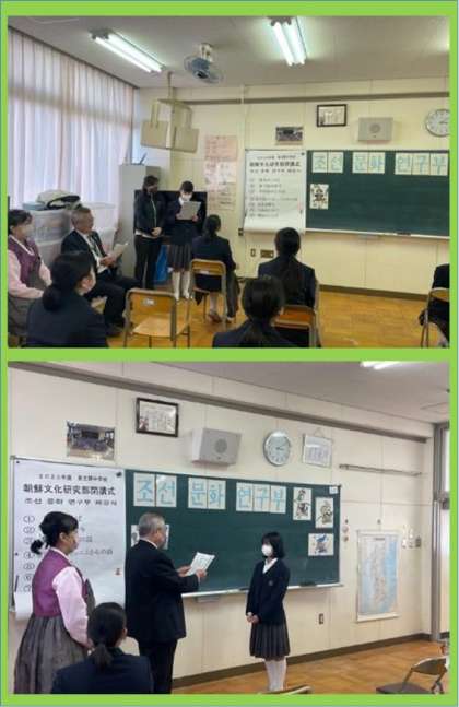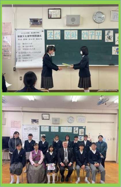 昨日の放課後に令和2年度国際クラブ「朝鮮文化研究部」閉校式を行いました。