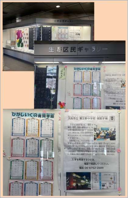 昨日から、生野区役所1Fギャラリーにて今年度授業等で作った作品を展示していますので近くに行く際は是非ご覧ください。期間は3月末までです。(校長)