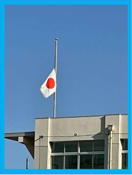 本日は「東日本大震災十周年追悼式」により、半旗掲揚にしています。