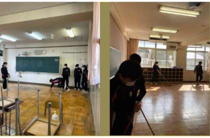 先週卒業式を終えた卒業生がボランティアで集まり、午前中、自分たちが使った教室やトイレをもう一度、清掃してくれました。