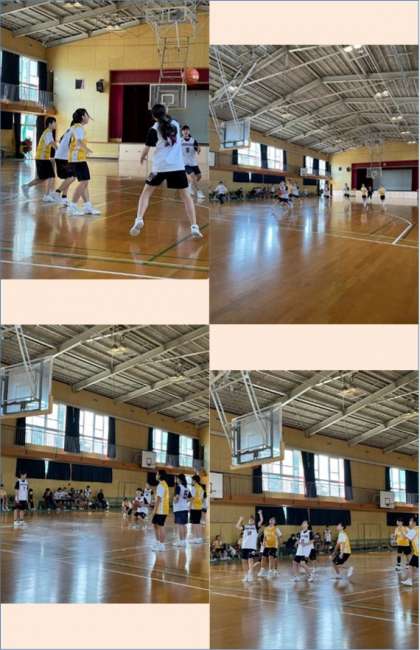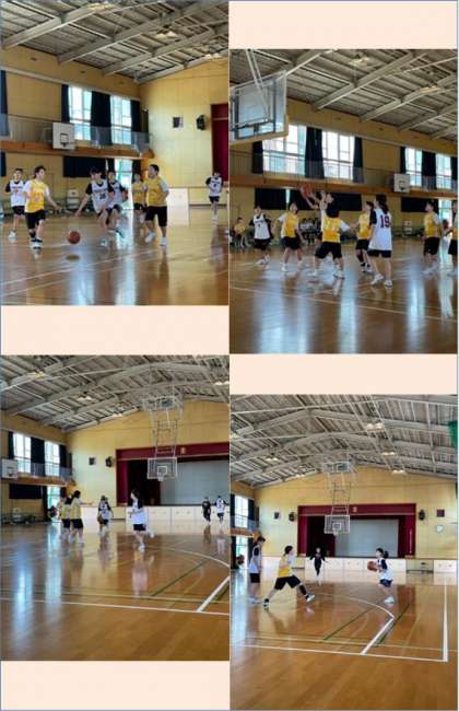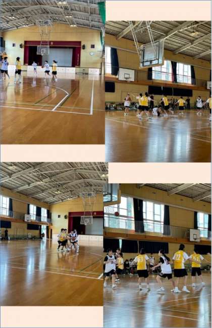 女子バスケットボール部は、校内で東陽中学校と練習試合を行っています。