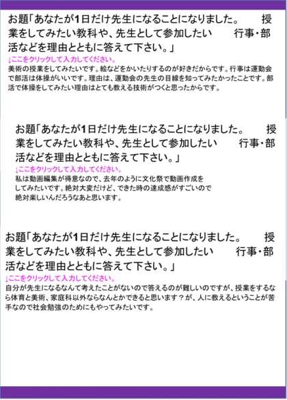 今日の1組、テーマと回答です。 (担当:石原)