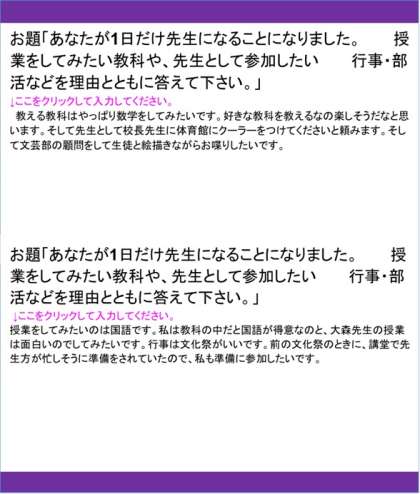 毎朝8時30分にテーマを示して、三行で考え返信させています。