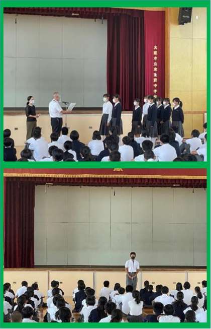 先週も、新聞社とテレビが取材に来られました。東生野中学校にばかり取材に来られるのはなぜかなと思い、尋ねてみると、東生野中の生徒はマイクを向けられても清々しくて、立派に堂々と自分の言葉で話してくれ取材していてうれしい、とおっしゃられました。