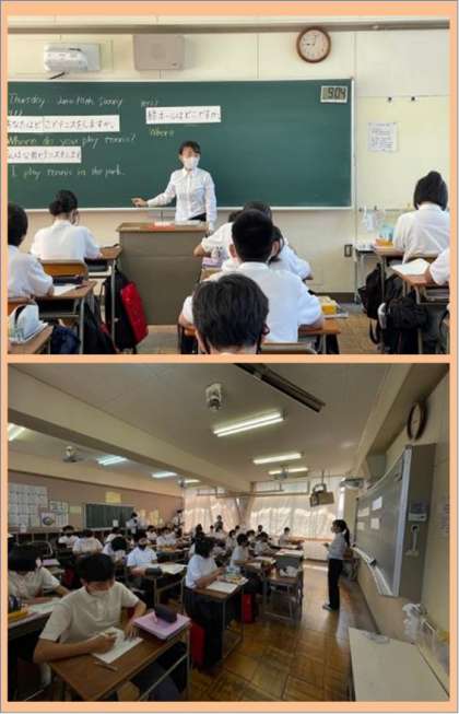 1時間目、1年2組において本校卒業生で教育実習生の金山いつき先生が英語の研究授業を行いました。金山いつき先生の出身大学である大阪教育大学からも先生が来られました。