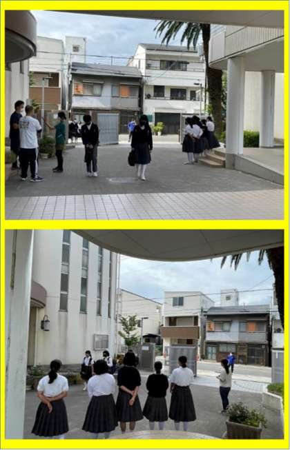 本日は今年度1回目の土曜授業です。正門では生徒会役員の皆さんがいつも通り、あいさつでむかえています。