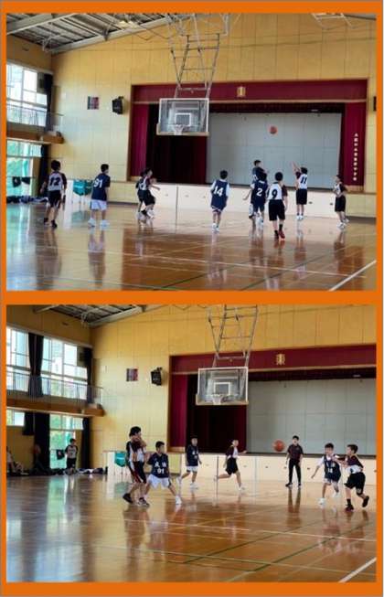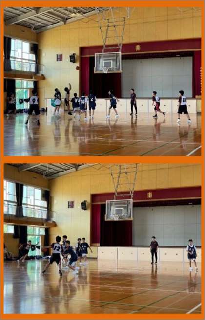 男子バスケットボール部は、八尾市立成法中学校を招き、練習試合をしました。レギュラー陣だけでなく、1年生チームも試合を行いました。