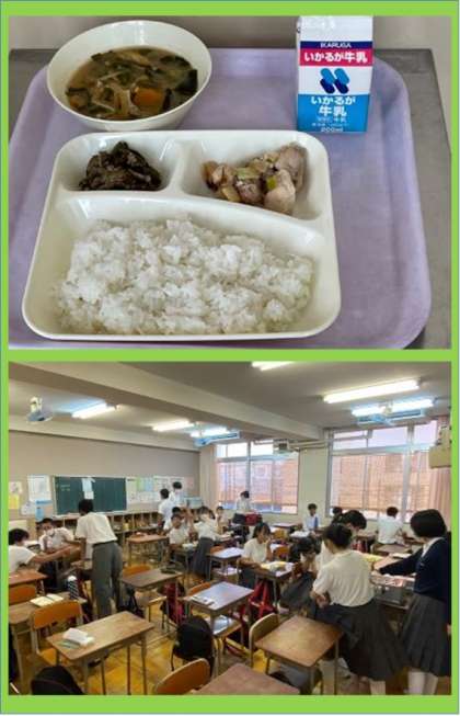 本日の給食メニューは、「焼きとり」・「みそ汁」・「なすのそぼろいため」・「ごはん」・「牛乳」でした。