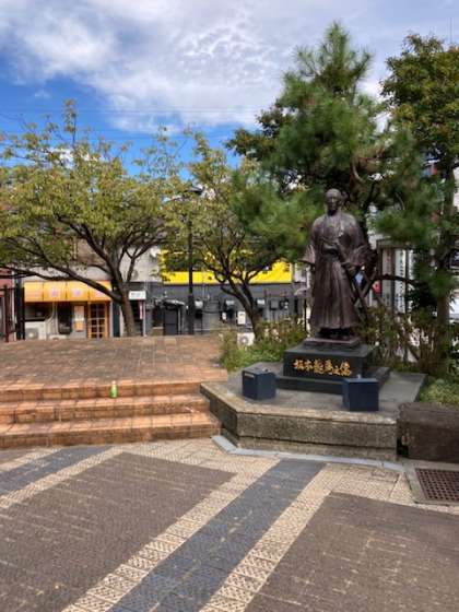福砂屋近くの丸山公園の坂本龍馬像です。