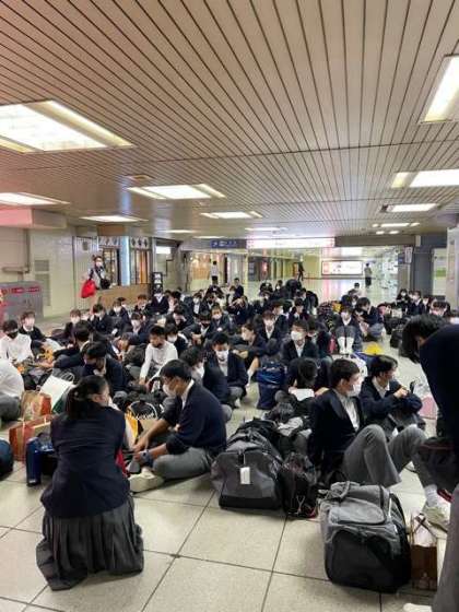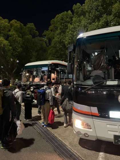 新大阪から中学校まではバス2台で帰ります。