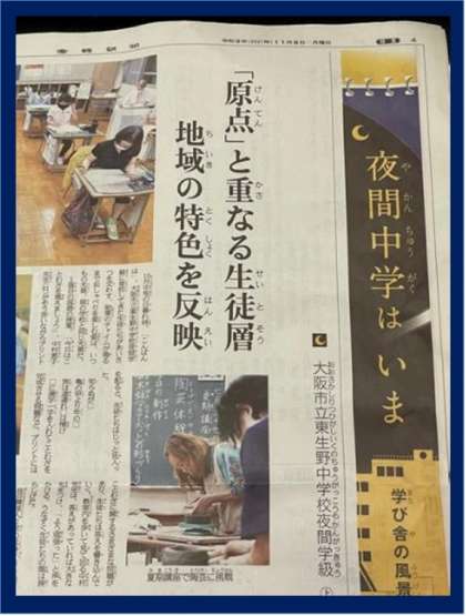 本日の産経新聞夕刊に本校夜間学級が紹介されています。