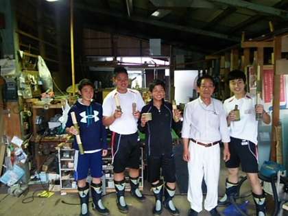 【下の写真】民家の人に教わりながら作った竹細工