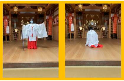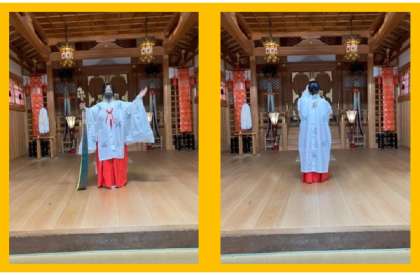 10日に行った巫女舞の練習の成果を試すため、昨日は神殿で巫女の舞を奉納し、お祓いもしました。