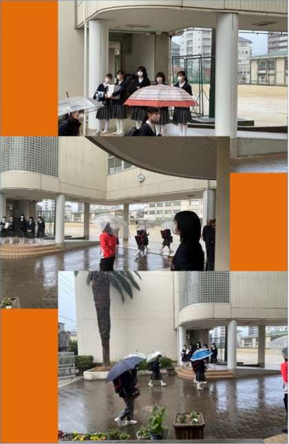 今日、は雨降る中での登校となりました。