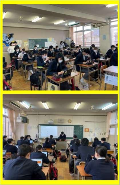1時間目、3年3組において目黒先生(国語科)の研究授業がタブレットを使って行われました。