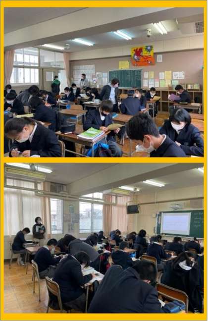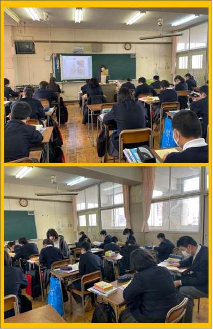 4時間目、1年2組において新熊先生(英語科)の研究授業が行われました。