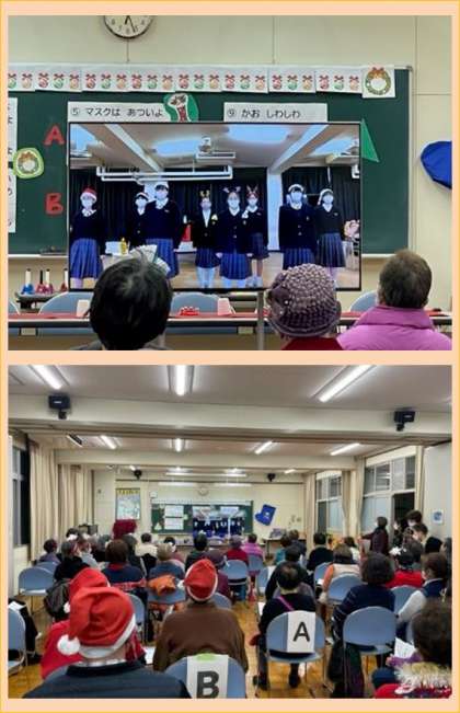 毎年コーラス部も参加するのですが、コロナ禍のため、ビデオレターで参加しクリスマスソングを披露しました。