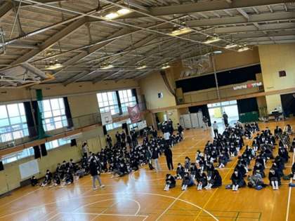 来週月曜日に1,2年生ている「卒業生を送る会」の練習を1,2年生合同で行いました。