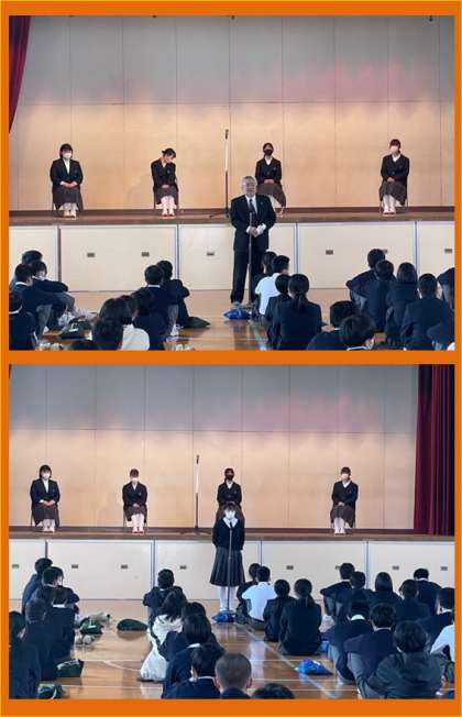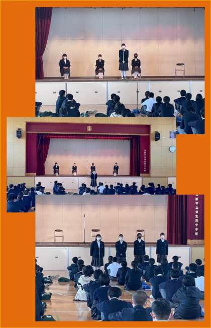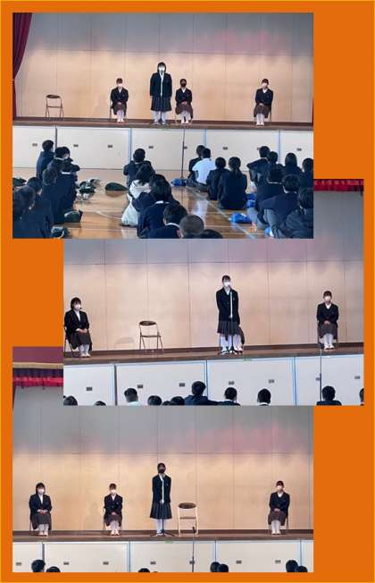 昨日6時間目、令和4年度前期生徒会役員選挙立候補者決意表明がありました。