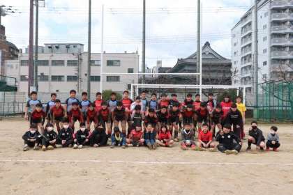 生野ラグビースクールの小学6年生が卒業するにあたって、小学6年生対東生野中学1年生、東生野中学3年生対東生野現役チームが試合をしました。