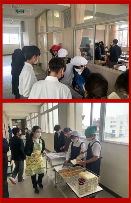 写真は1年生、中学校最初の給食でした。(担当:尾上)