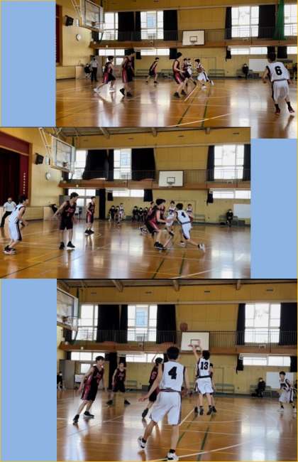16日(土)の1回戦は189cmと186cmのビッグマンが2人いる天満中学校です。身長が高いだけでなく、ドリブルやシュートの力もあるチームで苦戦しましたが、東生野の足を使った粘り強いディフェンスが機能して68対60で勝利しました。