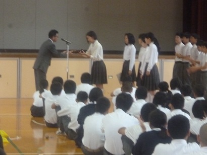 学校の名を背負って試合・大会で結果を残したチームのメンバーを、大きな拍手で称えました。