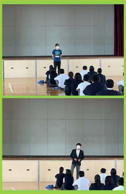 石原先生より、学年代表が1組の手崎君に決定したことと修学旅行の荷物を早い目にまとめておくように話がありました。続いて、学年代表の手崎くんから「修学旅行だけでなく、普段の学校生活を大切にしていきましょう」と話がありました。(担当:田中)
