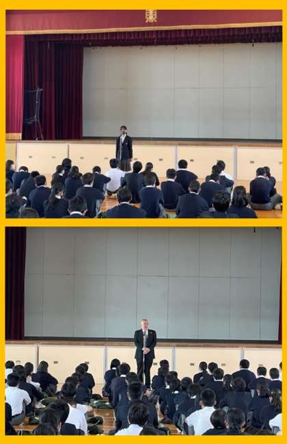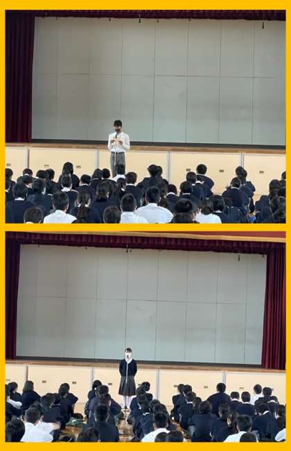 今日は大阪市全体でいじめについて考える日です。毎年アンケートをしていじめがないか調べています。いじめがあれば話を聞いて、解消してきました。今は東生野中学校にいじめはありません。近日中にアンケートをしますので、心配事があれば書いてください。