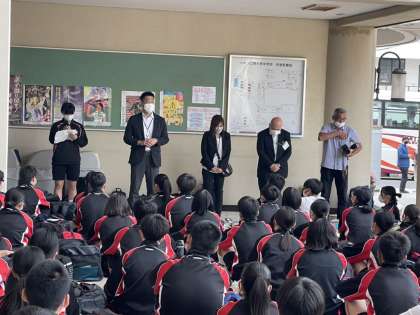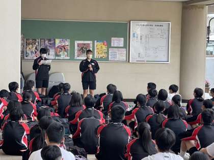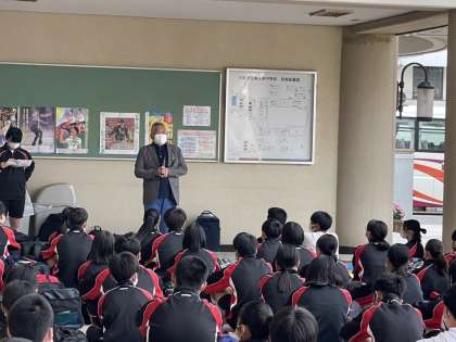 富士山方面めざして、3日間の修学旅行に出発します。出発式の様子です。