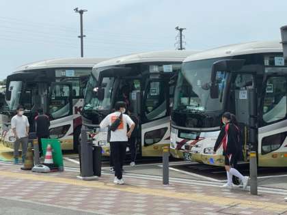 天候も良好。バス内では、生徒が作成した動画や音楽で楽しんでます。