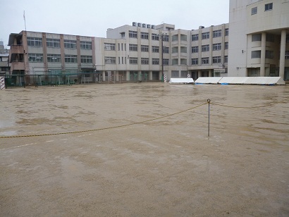 運動会当日ですが、昨夕からの雨が今も降り続き、グランド状態は思った以上に悪い状態です。