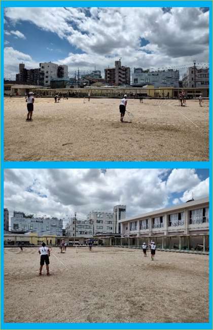 ソフトテニスの大阪市秋季総体予選会が新巽中学校で23日(土)にありました。この予選会は団体形式で、3ペアずつ出て2勝した方が勝ちです。第4ブロックからは、上位7チームが9月の秋季総体へ進みます。
