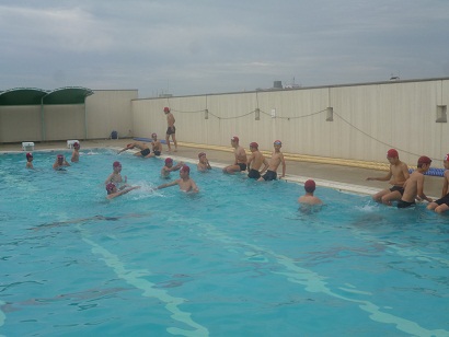 曇り空で少し肌寒い中、生徒達は元気に水の中を泳ぎ回りました。
