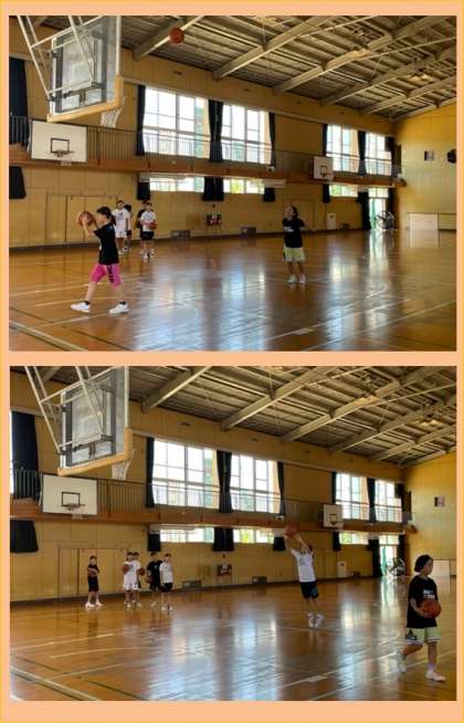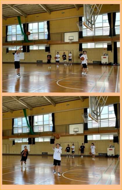 暑い日が続きますが、体育館では、午前中は女子バスケットボール部が活動しています。