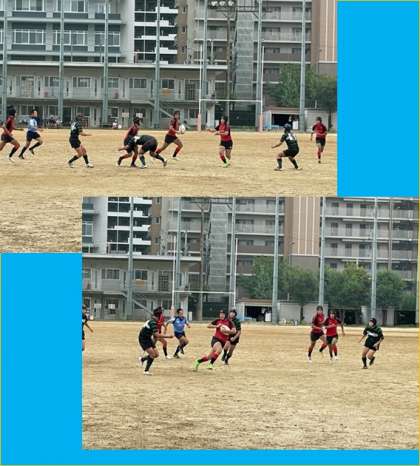 本校はカテゴリー1のAグループで第1試合、合同A(巽・新生野・田島)チームと対戦しました。終始ゲームを支配し4トライ1ゴール22点を獲得、0点に抑え2回戦へ。