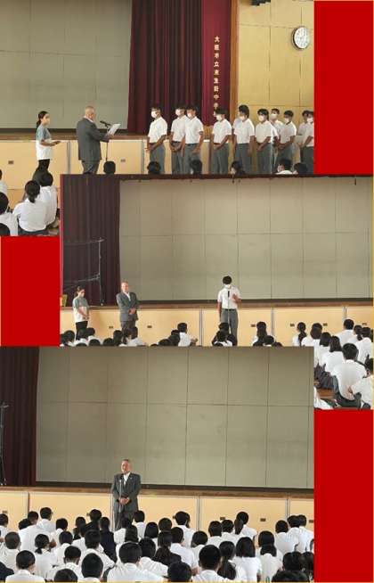 長い夏休みが終わり困ったことはありませんでしたか?悩みや報告したいことがある人は担任の先生に伝えてください。今日から気持ちを切り替えて2学期を過ごしてください。