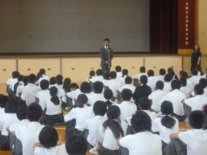 校長先生より、「6月1日施行の道路交通法の改正により『自転車の安全運転』についてルールが厳しくなりました。」というお話がありました。