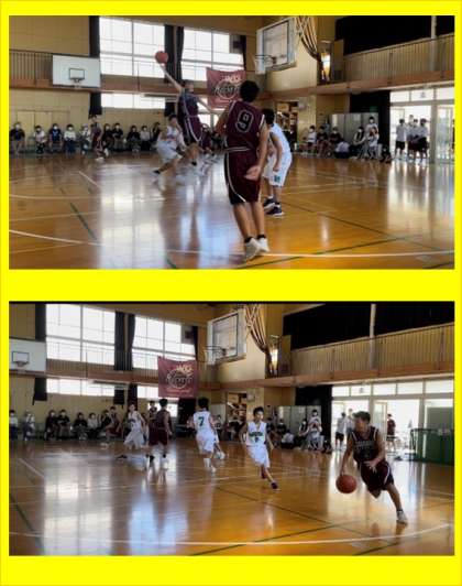 対戦相手は緑中学校です。身体能力の高いチームで押される場面もありましたが、チーム一丸となり全員バスケで78対62と勝ち抜くことができました。