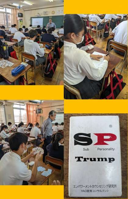 SPとは”サブパーソナル”の略で、個人の潜在的な性格のことを意味します。生徒たちは、様々な性格が書かれた52枚のトランプから10枚を選びます。その10枚から自分の特性を知り、その特性ごとに合った学習スタイルや、スランプに陥った時の対処法について学びました。