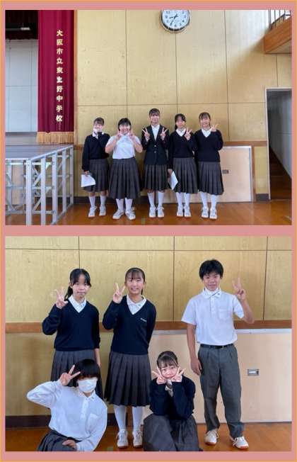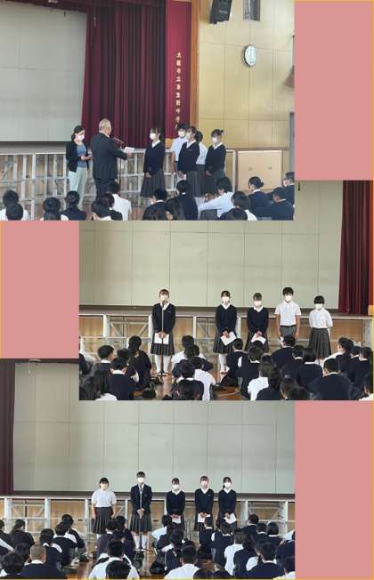 新役員は、会長古林花那さん(2年2組)、副会長グエンニュマイさん(2年3組)、執行委員一河明華里さん(2年1組)、板谷優花さん(1年2組)、向井泰雅さん(1年3組)です。