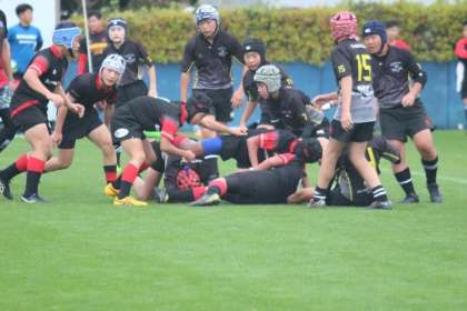11月26日(土)岐阜県中学校交流大会に招待されました。1年生から3年生まで全員出場し、ラグビーを楽しみました。