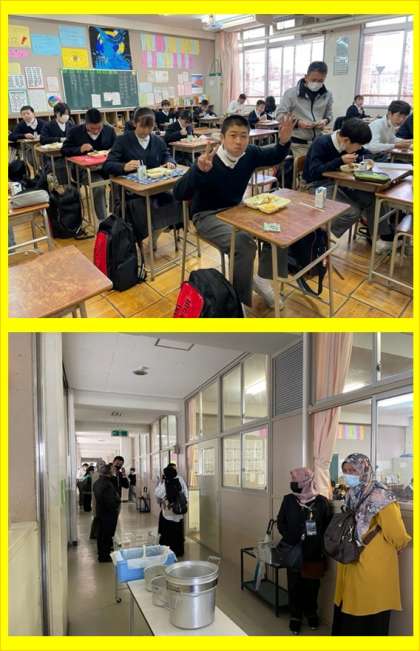 中華丼は人気メニューの一つです。給食の様子もマレーシアの先生方も見られています。