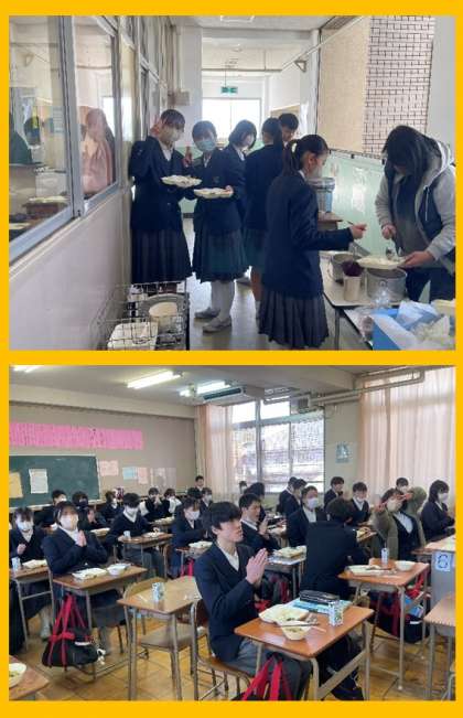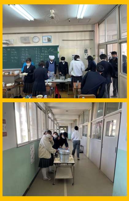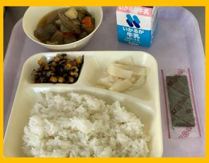 本日の給食メニューは、「鶏肉と野菜の煮もの」・「ひじき豆」・「かぶのゆず風味」・「ごはん」・「牛乳」でした。