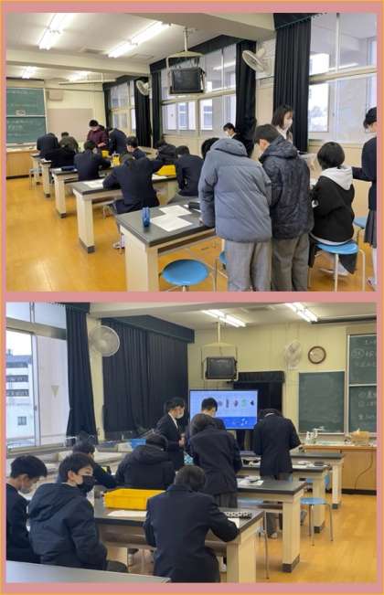 1時間目、1年3組で理科(松枝先生)の研究授業を行いました。