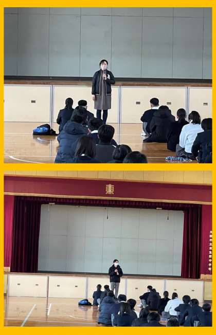浦久保先生より、「来週は、いよいよ私学入試です。みんなそれぞれの場所で戦います。食事、睡眠など生活リズムを整え、万全な状態で受験に臨めるようにしましょう。また、3年間は早かったです。みんなの成長を見届けてきました。みんなの成長を見ることができて嬉しく思っています。残り少ない時間ですが、学習面だけでなく、心の面の成長もして卒業していきましょう」と話がありました。