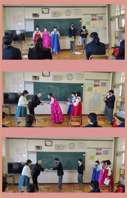 本日の放課後、国際クラブ「朝鮮文化研究会」の卒業式が行われました。