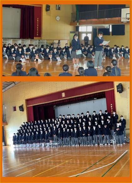 来週火曜日14日に卒業式がありますが、本日1時間目に生徒会主催の「卒業生を送る会」を実施しました。卒業式には一部の在校生だけの参列となるので、在校生全員にとっては、卒業生との交流は最後となります。