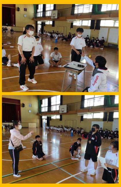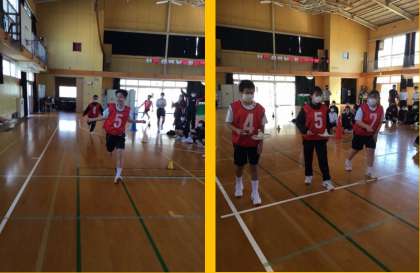 まず、5時間目は体育館で「バラエティーリレー」、「借り人競争」を行いました。